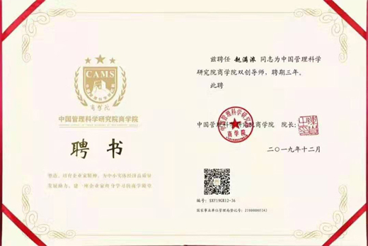 中國(guó)管理科學(xué)研究院商學(xué)院聘登尼特趙滿濃為雙創(chuàng)導(dǎo)師