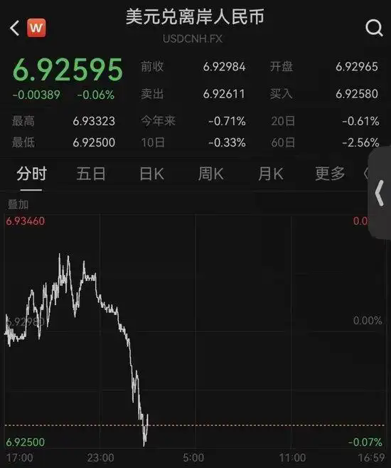 離岸市場(chǎng)上,人民幣對(duì)美元匯率2月9日盤中升至6.9250,創(chuàng)下2023年5月10日以來的新高的33個(gè)月新高。
